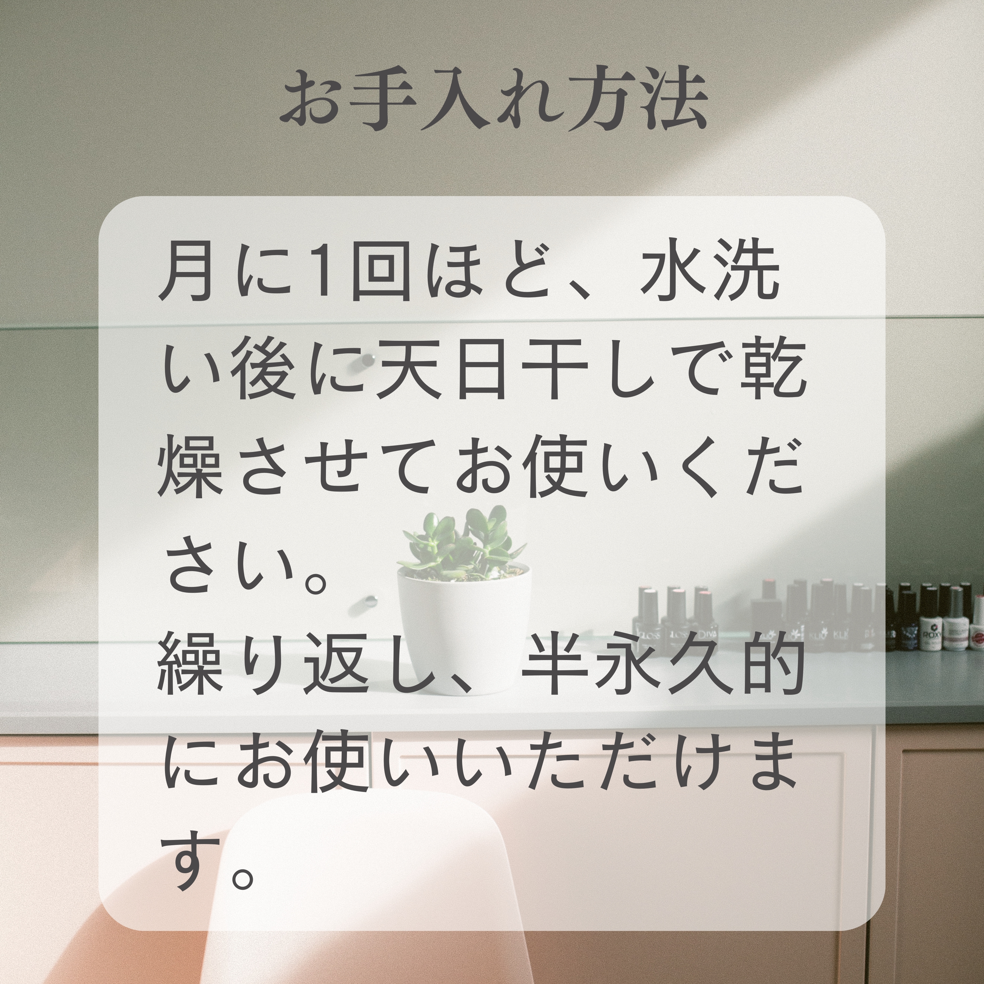 月に1回ほど、水洗い後に天日干しで乾燥させてお使いください。